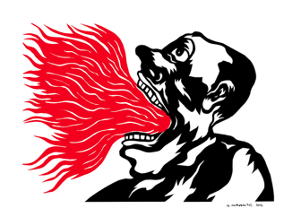 When I was researching an exhibition to mark the twentieth anniversary of the fall of the Soviet Union, I asked Andrzej Klimowski to recommend artists. Without hesitation he replied, ‘you must go to see Andrzej Krauze. When we were students he was our inspiration, and he still is today’. In the winter of 1981, when Martial Law was declared in his native Poland, Krauze was visiting the West. Already an established anti-establishment figure at home, the visual clerk pilloried those responsible with his paper and pen. His drawings flew around the world, and consequently Andrzej could not return home. He settled in England, and continued to draw.