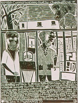 commemoration of the artist, a small group of activists set up a community arts project for children and young people in the Katatura district of Windhoek, Namibia’s capital city. Fuelled by volunteerism and supported by Unions and political parties, they ran regular workshops and events for the next four years. In 1992 this project, called The John Muafangejo Arts Centre, closed.