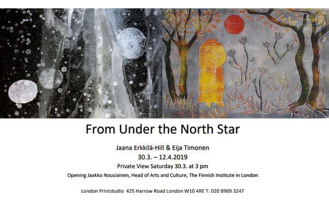 The Exhibition will be opened by Dr.Jaakko Nousiainen, The Head of Culture in The Finnish Institute in London. The art works by Erkkilä and Timonen are about finding a landscape that is far beyond reality. They reach towards mythological sceneries, up to the stars and down to the deep waters.